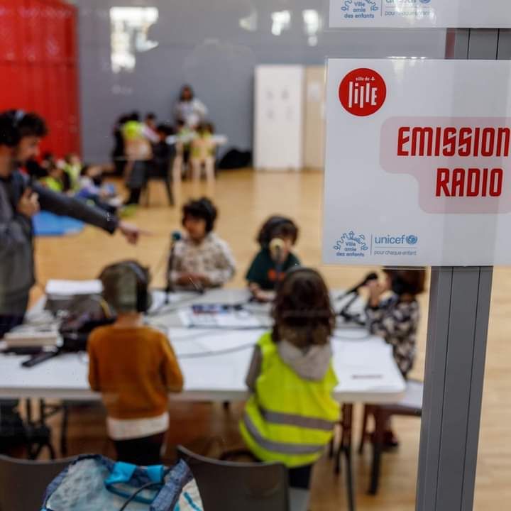 Le 20 novembre 2024 au Palais des Sports Saint Sauveur à Lille, les journalistes-intervenant.es Adrien, Jérémie et Pauline ont accompagné des enfants de 7 à 11 ans à produire une émission de radio sur la place des enfants dans les médias, dans le cadre de la Convention Internationale des Droits des Enfants organisé par la ville de Lille.